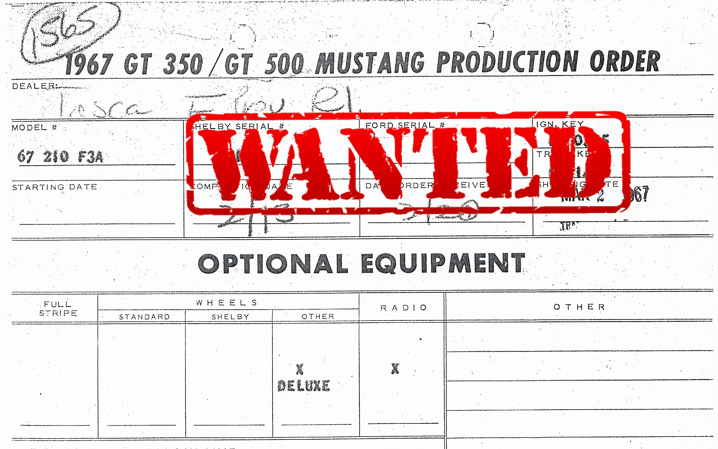 Shelby Sales Invoice (or Window Sticker) for